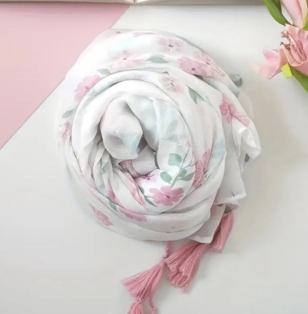 Maryam's Essential Flower Printed Polyester Tassels Hijab