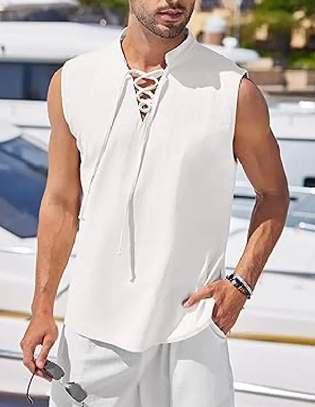 Maryam’s Essential Breathable Drawstring Lace Up Sleeveless Cotton Top Tank