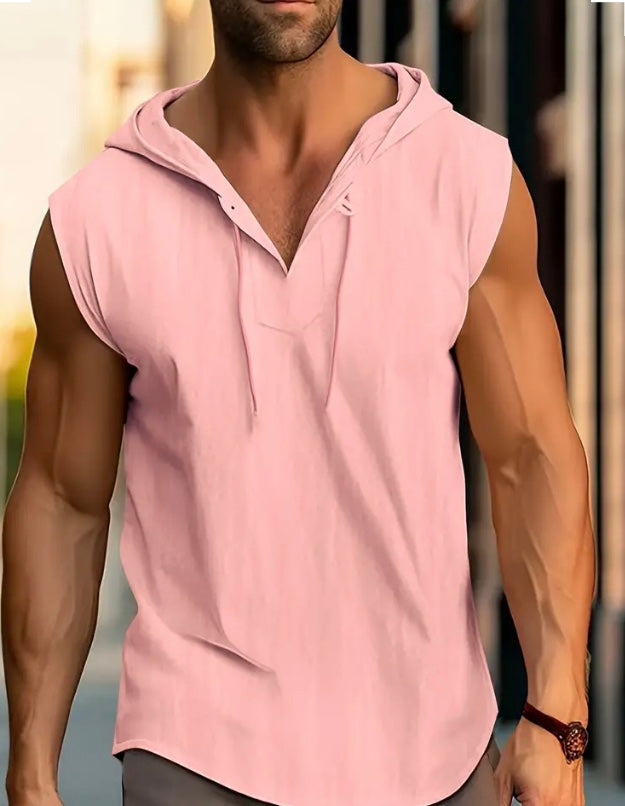 Maryam’s Essential Breathable Hood Drawstring Sleeveless Cotton Linen Top Tank