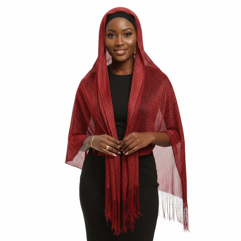 Maryam’s Essential Elegant Sparkling Metallic Shawls with Tassels