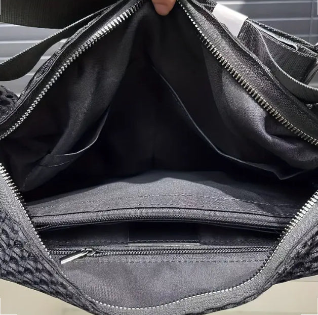 * Material & Style: Crafted from lightweight mesh and PU leather, this bag offers durability and a sleek look. The mesh material allows for breathability, while the PU Leather ensures a sophisticated finish. Ideal for those who value both aesthetics and practicality in their accessories.