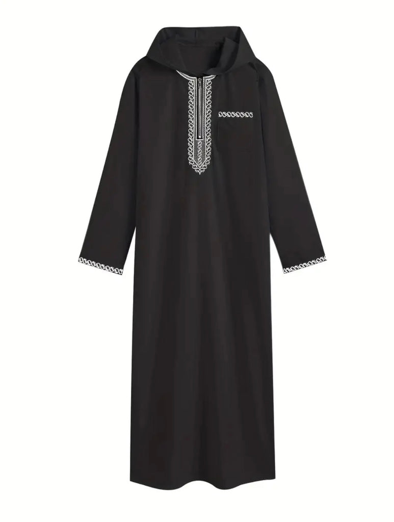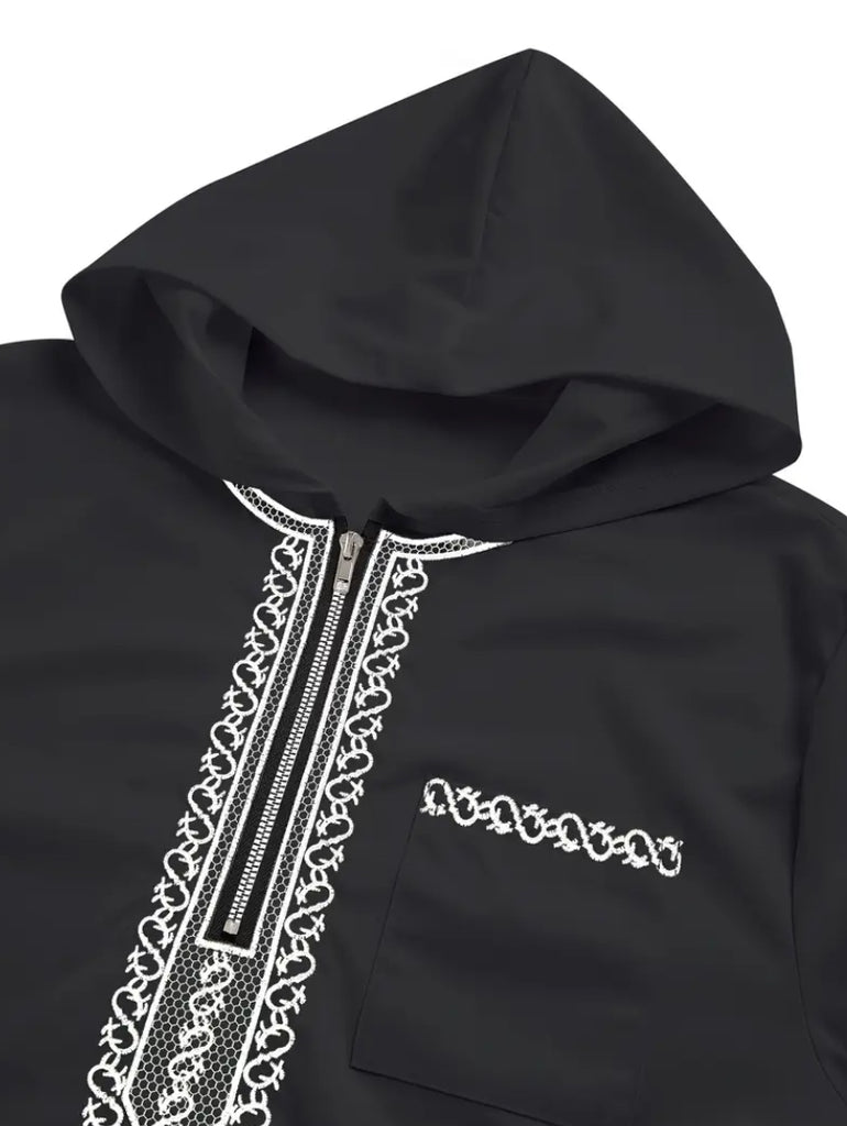 Maryam’s Essential Luxury Arab Men Geometric Pattern Ethnic Hoody Kaftan