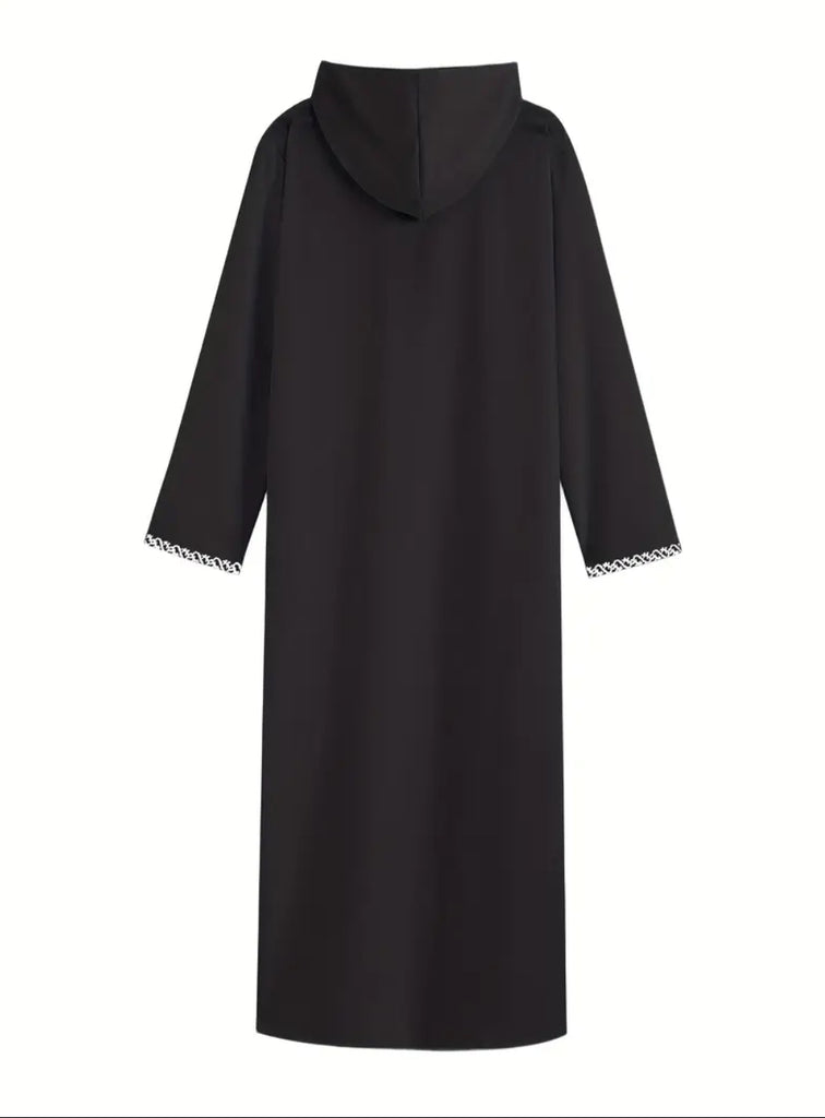 Simplicity is the mission on design, The kaftan is lightweight and non-elastic material. Loose fit silhouette with hood to pull over your head or leave it down.