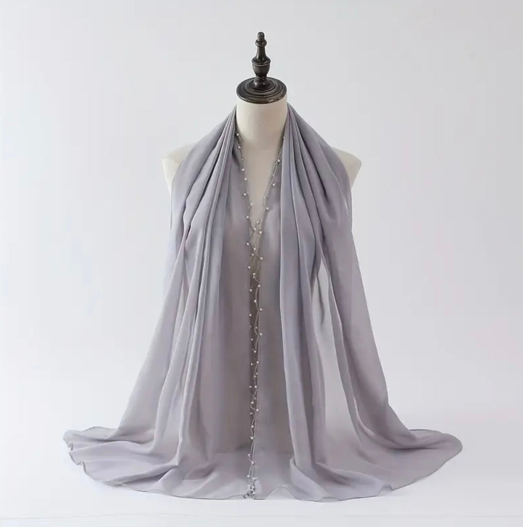 Maryam’s Essential Luxury Pearls Chiffon with Beaded Wave Edge Hijab