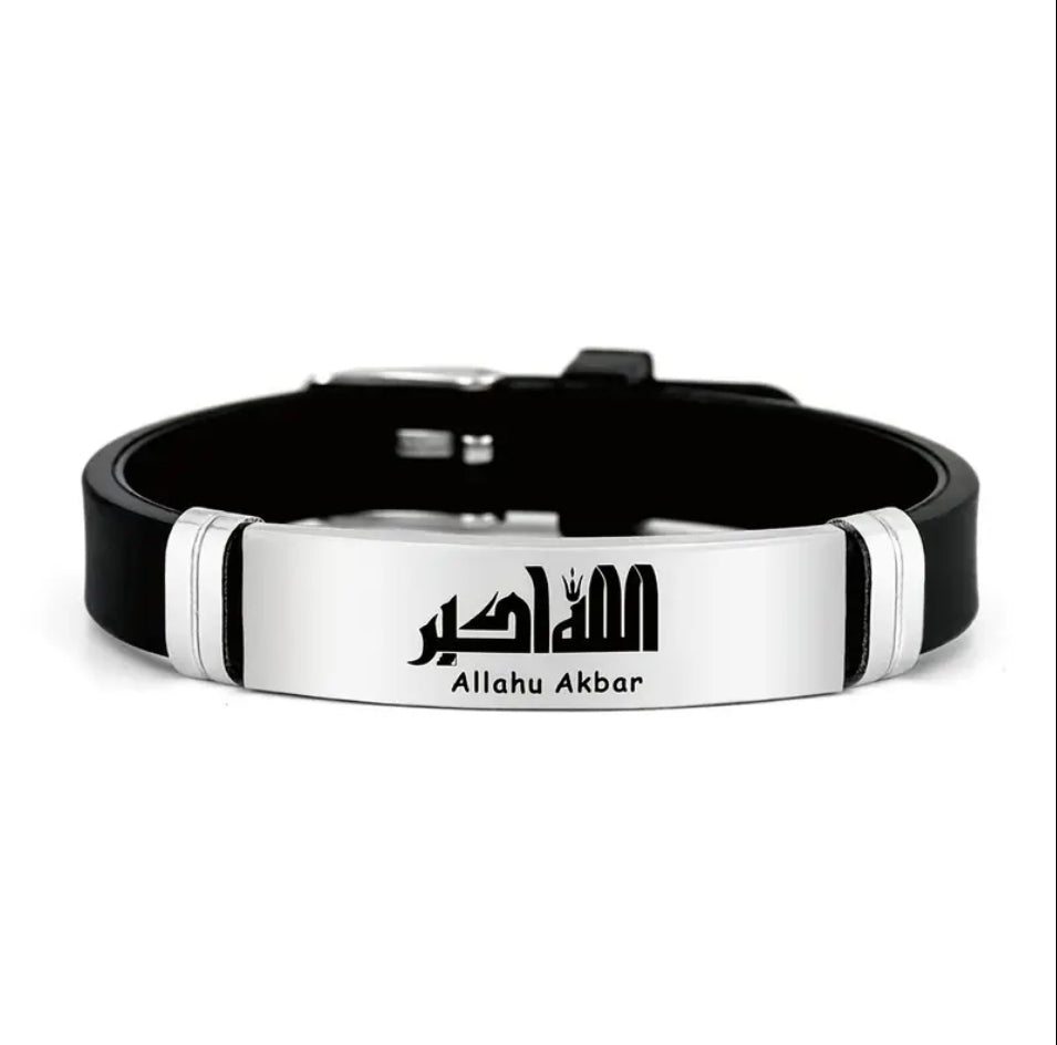 This bracelet features the significant Arabic phrase "ALLAHU AKBAR," a profound statement of faith. It's designed for those who appreciate the essence of Muslim culture and spirituality. The bracelet is a meaningful accessory for daily wear or special occasions.