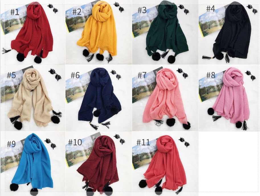 Maryam's Diamond Style Latest Cotton Viscose Pleated Crinkle with Pom Pom Hijab are our staple stylishly designed with Pom poms which have been secured individually by hand provides definition and richness.