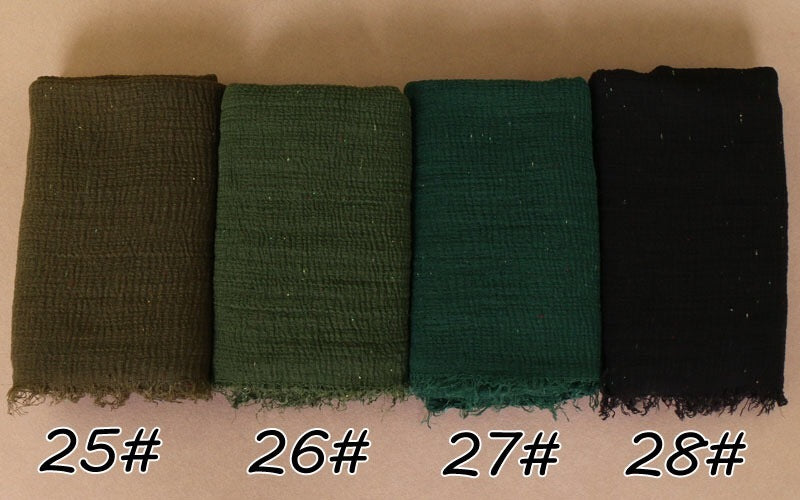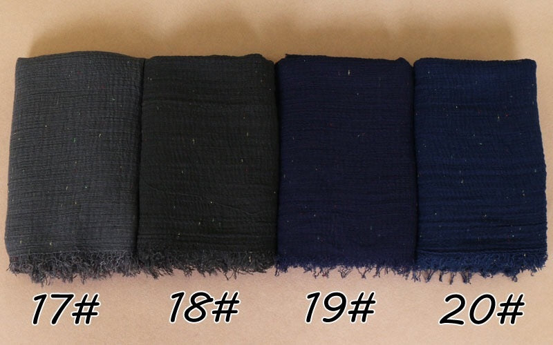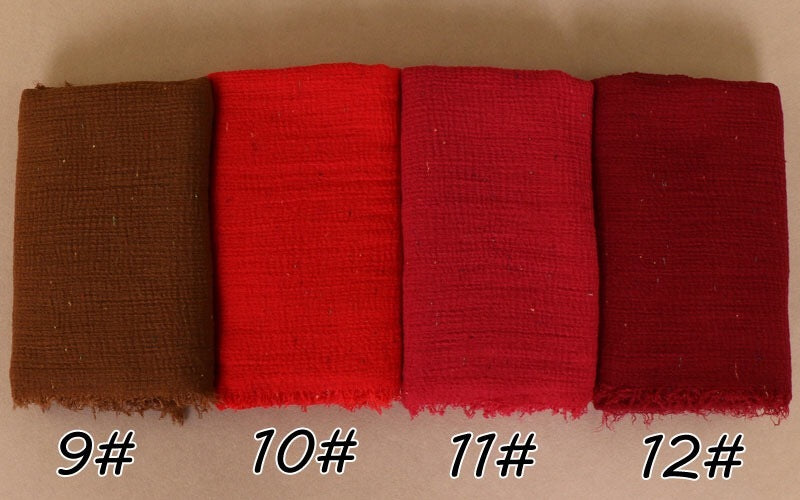 Maryam's Diamond Brand Style Premium Shimmer Cotton Crinckle Hijab are a Luxurant comfort and style. They are made from cotton, sparks and spandex blend, a very soft feel which makes it wrinkle resistant and so simple to style due to its stretchy and ofcource non-slippery construction.