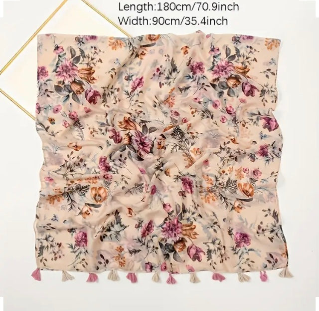 Maryam's Essential Flower Printed Polyester Tassels Hijab