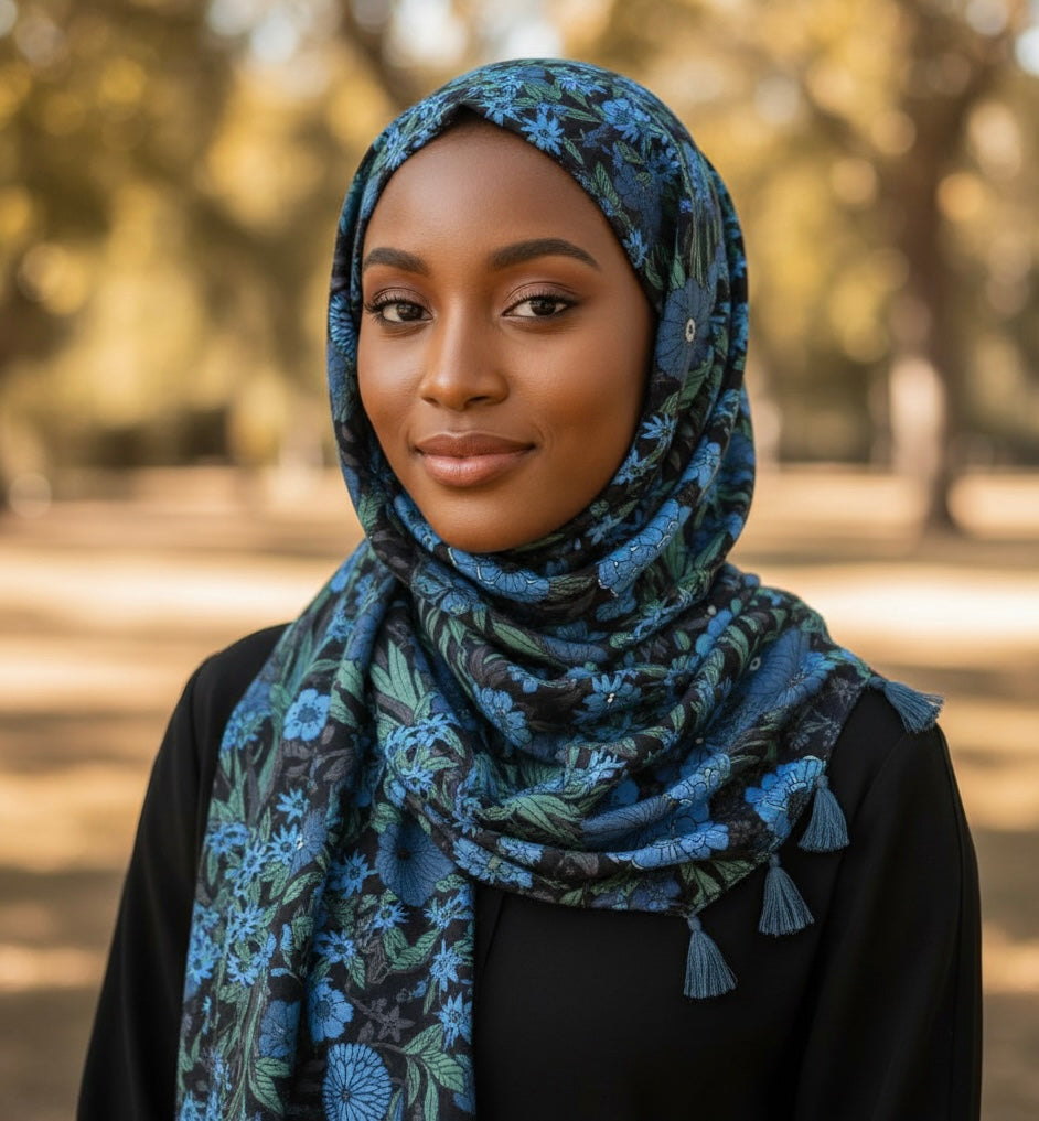 Maryam's Essential Floral Printed Cotton Viscose Tassels Hijab collection are produced from cotton material which makes them extremely strong, durable resistant to shrinking and wrinkle, a very soft feel, simple to style due to its construction.
