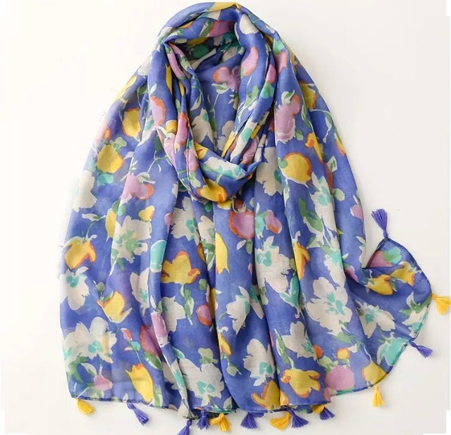 Maryam's Essential Flower Printed Cotton Viscose Tassels Hijab