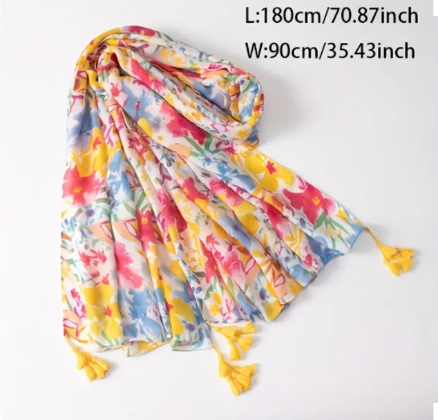 Maryam's Essential Luxury Flower Printed Cotton Tassels Hijab