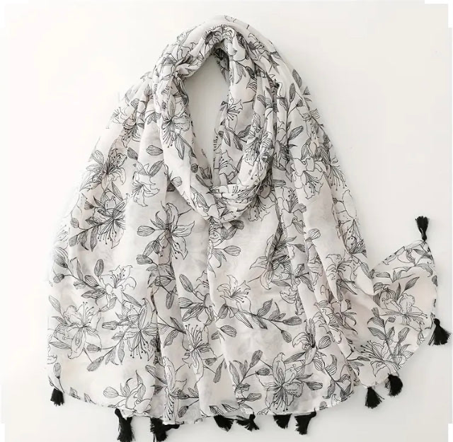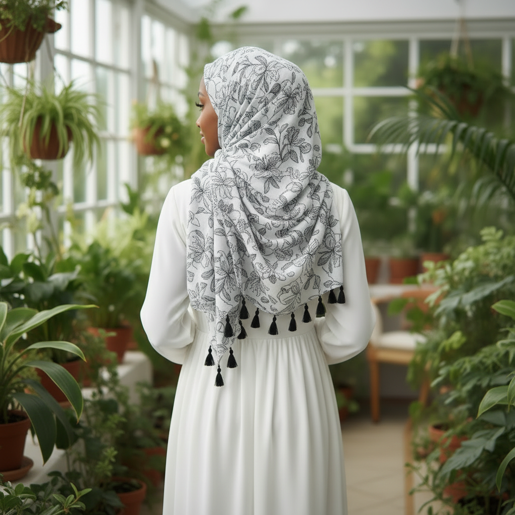 Maryam's Essential Plants Printed Cotton Viscose Tassels Hijab collection are of very durable element, light with soft touch which helps you embrace your style.