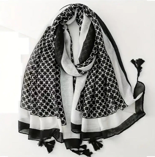 Maryam's Essential Printed Cotton Viscose Tassels Hijab