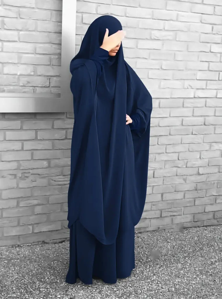 This our elegant and comfortable 2 piece over head Khimar Kaftan provides complete coverage in two easy to wear garment.